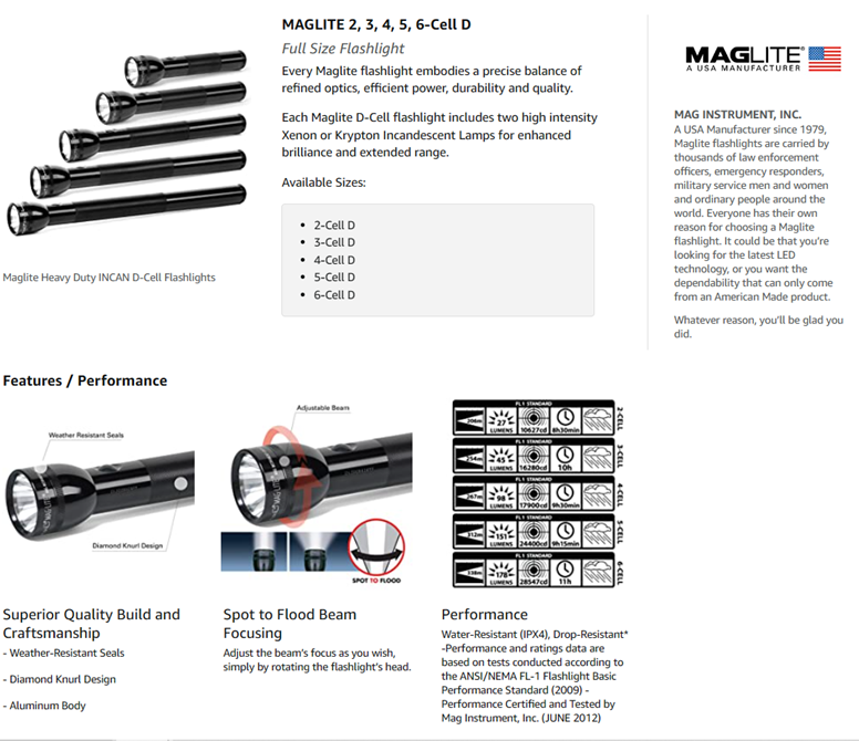 Included Components | Maglite Heavy-Duty Incandescent 4-Cell D Flashlight, Black |