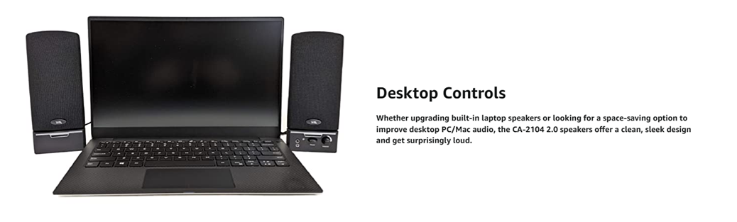 - Ideal for the office or any workspace: Space saving 2.0 PC speakers fit on any tight desktop. Great for any multi-media listening experience, music, games, or voice!
