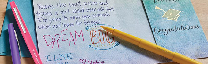Fact: Dull, smudgy ink is a downer. So boost your writing fun factor with Paper Mate Flair Pens. With a rainbow of bright colors and smear resistant ink that won’t bleed through the page, these colored pens make writing a blast. The medium point (0.7 mm) writes in bold, colorful lines so your self-expression makes a major statement. The best part of all? Everything you can create—whether you’re taking notes, bullet journaling, drawing, doodling, or doing anything else that inspires you. With Paper Mate Flair Pens, there’s no limit to your fun.