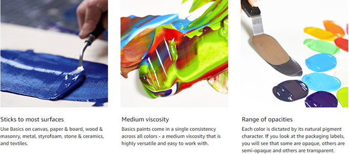Value Series Acrylic Paints like Liquitex BASICS are formulated to offer dependable standards of performance at a more affordable cost. Liquitex BASICS Acrylic Paint is developed for students and artists that need quality at outstanding value. Each color is uniquely formulated to bring out the maximum brilliance and clarity of the individual pigment. 48-Color Spectrum; A heavy body acrylic paint that retains peaks and brush strokes. Contains permanent artist pigments. All colors dry to a satin finish. Intermixable with all Liquitex Professional Acrylic Colors and Mediums. Ideal for learning color theory and color mixing. All colors hold the AP Seal from ACMI and are safe for educational use. Visit our Liquitex Amazon Storefront for full product assortment.