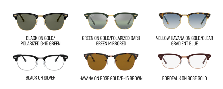 • Classic clubmaster sunglasses: The Ray-Ban Clubmaster has an iconic look, shape, feel, and style. Worn by cultural intellectuals and Hollywood superstars, these superior glasses are both comfortable and fashionable