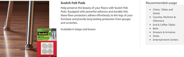 • SCOTCH FELT PADS FOR FURNITURE: Ideal for use on furniture, lamps and décor that sit on finished surfaces. Use for your chairs, tables, stools, couches, ottomans, end & coffee tables, dressers & armoires