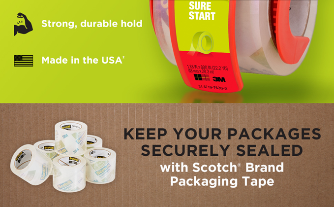 Scotch Sure Start Shipping Packaging Tape, 1.88" x 25 yd, Designed for Packing, Shipping and Mailing, Quiet Unwind, No Splitting or Tearing, 1.5" Core, Clear, 6 Rolls (DP-1000RF6)