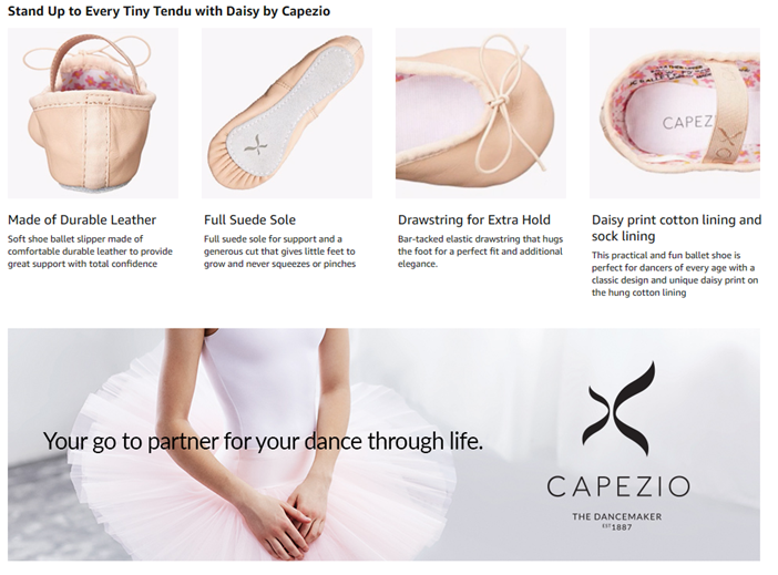 She'll love every minute of wearing Capezio's Daisy ballet shoe. The leather shoe features a lightly padded footbed, suede sole for ultimate flexibility, and a pre-attached elastic strap keeps her foot snug and in place.