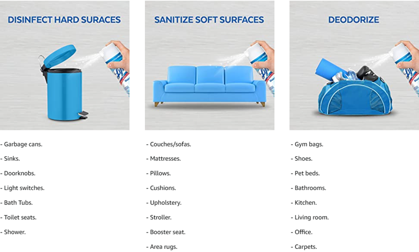 Kills 99.9% Of Viruses & Bacteria on All these Surfaces and More