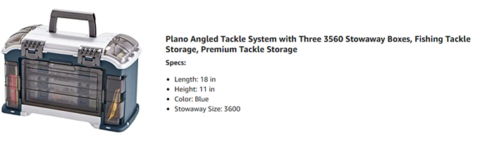 Plano 728 angled tackle system makes it easy to access your go-to gear. The compact case secures three 3600 size stowaway utility boxes and has plenty of room for holding soft Baits and other essential tackle.