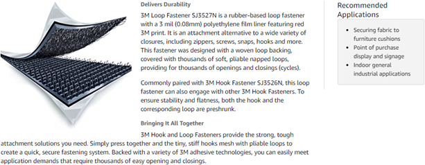 • Trial bag version (1 in. x 10 ft.) of 3M Hook Fastener SJ3526N and 3M Loop Fastener SJ3527N
