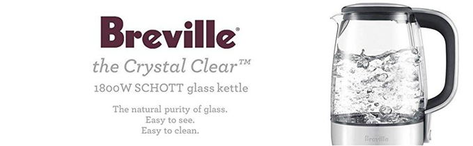 The Breville BKE595XL Crystal Clear Electric Kettle ensures a more pure boil using the natural purity of glass.