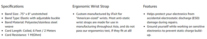 iFixit Anti-Static Wrist Strap (Adjustable up to Size XL) - ESD Grounding Wristband