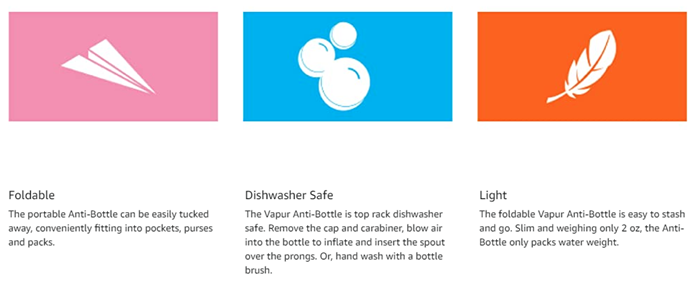 Mission: To inspire and support active lifestyles with innovative, ultimately portable, products. Live Flexible. California-based Vapur started in 2009 as a big idea with a simple solution. With unwelcome waste creeping into the social conscious and light shed on the ugly aftereffects of plastic, three avid outdoorsmen set out to find an answer. This team, led by a commitment to design, innovation and eco-responsibility, was on a mission to make hydration incomparably portable and disposable bottles obsolete. The Anti-Bottle is a reusable water bottle designed to stand when full and can be rolled, folded or flattened when empty, making it easy to use and carry on any adventure. Unlike bulky, rigid bottles, the portable Anti-Bottle can be easily tucked away, conveniently fitting into pockets, purses and packs. About 87percentage lighter than typical rigid bottles, the slim, flexible Anti-Bottle only packs water weight. It also uses less energy to make and transport than rigid bottles, so not only is the Anti-Bottle light on your load, its environmental impact is also pretty “lite.” Now as the leading designer, marketer and distributor of reusable, handheld, collapsible hydration products, Vapur’s Anti-Bottles have been adopted by athletes, celebrities, activists and families alike. Vapur Anti-Bottles are reusable, flexible, collapsible, durable, freezable, dishwasher safe and BPA-free. Now drink up and as always, "Live Flexible."