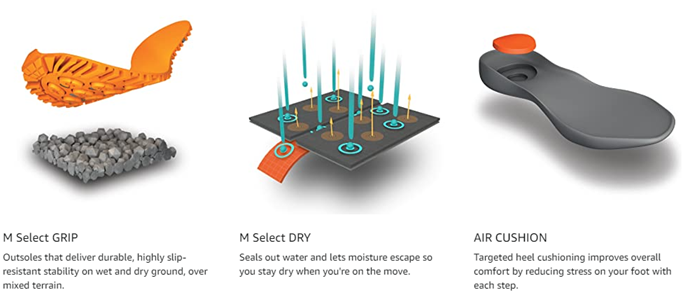 M-Select GRIP tunes each outsole with durable traction that grips when and where you need it.