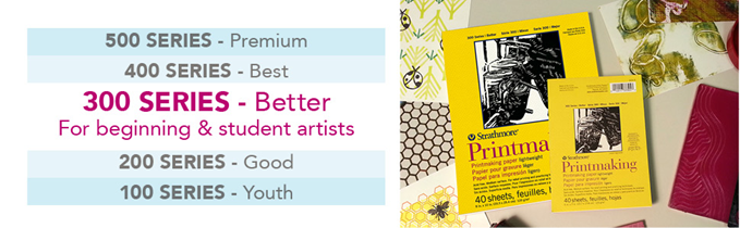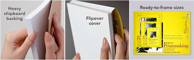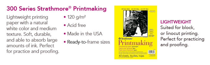 Strathmore 300 Lightweight Printmaking Paper Pad measuring 8 x 10 inch contains 40 sheets and is great for relief printing, block or linocut, practicing and proofing. Natural white paper features soft medium-textured surface that can absorb large amounts of ink and provides durable performance. It is acid free and is made from high alpha cellulose wood fiber for longevity.