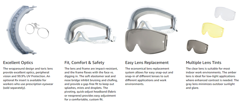 Protect your eyes from airborne debris, chemical splashes and impacts with the Uvex Stealth Safety Goggles with Uvextreme Anti-Fog Coating & Neoprene Headband. The contemporary low-profile design of these safety goggles features a soft, elastomer body that flexes and conforms to the face for a secure, comfortable, gap-free fit. The clear toric lens with Uvextreme anti-fog coating provides superior optics for excellent vision in most indoor work environments. A pivoting, quick-adjust neoprene headband allows for a customized fit and longwearing comfort on the job. Lens replacement is easy and economical. Safe and durable, these goggles meet ANSI Z87.1-2003 and CSA Z94.3 standards.