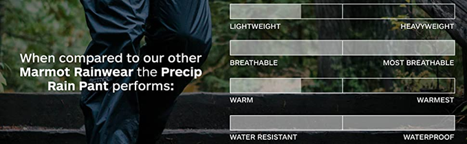• Innovating To Improve The Human Experience - Marmot strives to deliver best-in-class warmth, protection and ease of use on every product. The PreCip pants feature fully taped seams to prevent leaks and bonded storm flaps over the zippers to keep moisture out. Zippered side pockets and back pocket provide quick storage for your personal items.