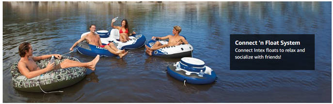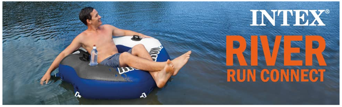 Intex® River Run Connect Lounge :: Enjoy the water all summer long with the Intex® River Run Connect Lounge. Designed with a built-in backrest for easy cruising and a mesh bottom that keeps you cool. This fun lounger has two air chambers for added safety, and a built-in cup holder to keep your refreshment nearby as you relax in the water. Two heavy-duty grab handles, and easy to use connectors to fasten it to an Intex® River Run Connect Cooler or additional River Runs are included.