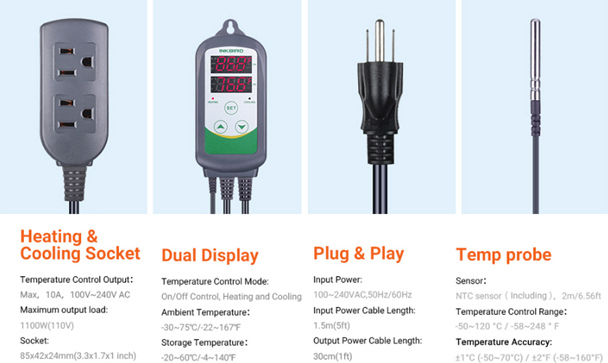 ??【Dual Relay Output】You can use the cooling device or heating device separately, or you can plug the cooler and the heater at the same time.