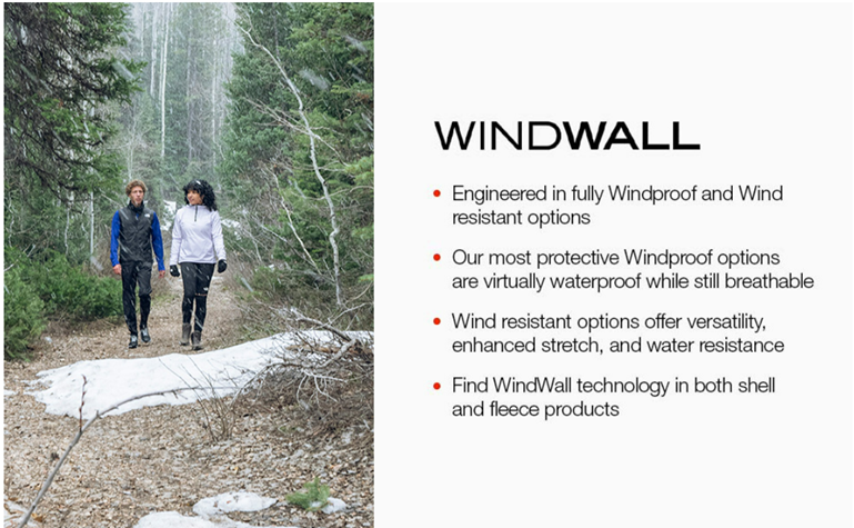 • WINDPROOF & WATER-RESISTANT. Made from a 100%-recycled polyester, advanced WindWall protection and coated with a Durable Water-Repellent (DWR) Finish, this 100% windproof jacket keeps you warmer and more comfortable all day long.