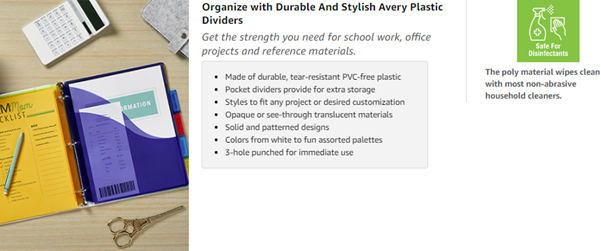 These Big Tab Write & Erase Durable Plastic Dividers let you write, erase and reuse your 3 ring binder dividers for easy changes at any time. Simply write directly on the stylishly shaped tabs with a ballpoint pen or pencil, and erase as needed. You can also take quick notes on the 8.5” x 11” plastic divider body and easily erase later. Made from ultra-durable, tear-resistant plastic, these dividers can be wiped clean with most non-abrasive household cleaners and are ideal for frequent use in any 3 ring binder. The Big Tab design offers 1.5 times more writing space than standard binder dividers with tabs, and the multiple bright colors allow for quick referencing. Ideal for your personal organization at home, work and school. This item comes with a set of 8-tab dividers for a total of 8 multicolor dividers.