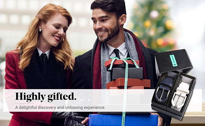 PERFECT GIFT IDEA - get a taste of luxury packaging with Marino! Our stretch belts are enclosed in a sleek, modern gift that is perfect present for men with delightful discovery and unboxing experience!