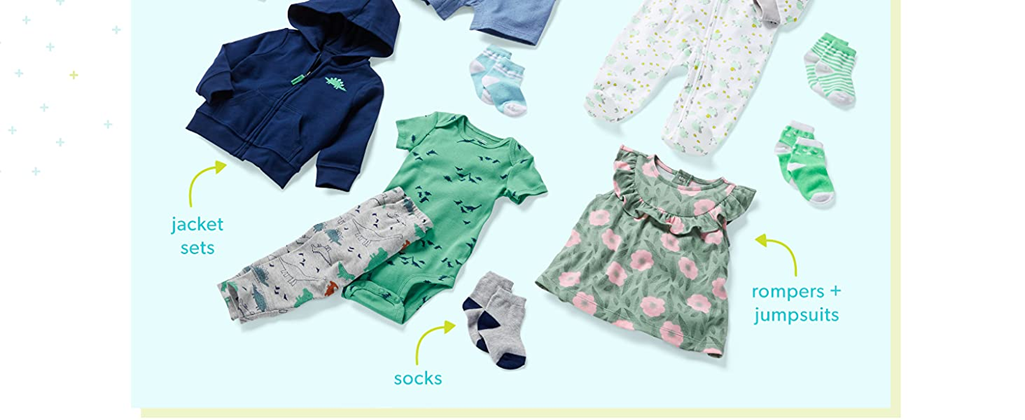 Featuring ruffles, floral prints, and cute critters, this 4-piece mix-and-match set includes two body suits and two pants.