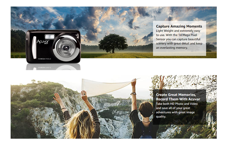 Take it anywhere, Small, Light Weight and Portable. It is the perfect vacation cameraacuvar 14 megapixel camera image