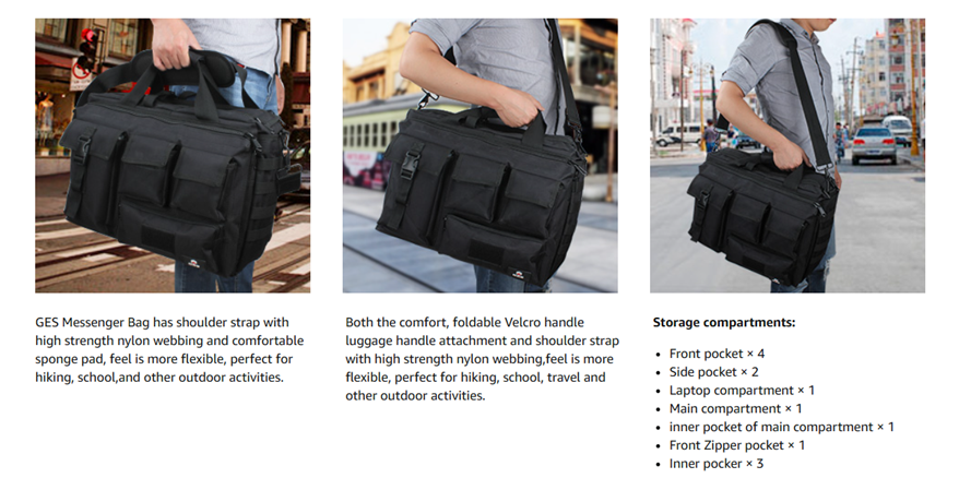 - MOLLE SYSTEM: Laptop bags for men on both sides with expainded capabilties,may be outside the hanging objects such as kettles pouch etc.