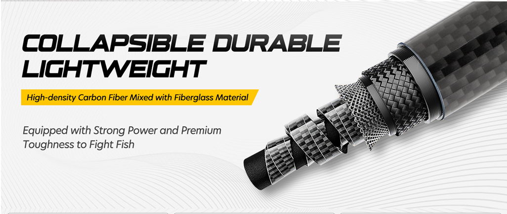 • ? Perfect elasticity, high density Carbon fiber mixed with fiberglass makes your fishing pole hard & durable. Stainless Steel Hooded Reel Seat is anti-seawater corrosion; EVA Fore Grip for comfort. The telescopic fishing rod is portable, and closed length design is convenient carrying around. Power: Medium.