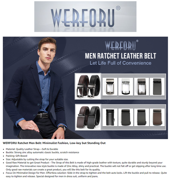 This is a new style high quality leather ratchet dress belt, Comfortable and easy to adjust if needed. A simple tug and click is all it takes.✦ WERFORU Package includes 2*belt, 1*screwdriver and 1*instruction card with coupon code.