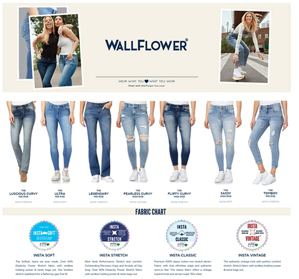 The Luscious Curvy Bootcut is our throwback inspired mid rise fit in soft stretch denim. The forever flattering fit from season to season! Whether you’re looking for your go to jeans in a fresh wash or you want to try a new fit entirely, WallFlower has a little something for everyone! We are size inclusive (standard, curvy and plus), which means – great jeans for all women. Period