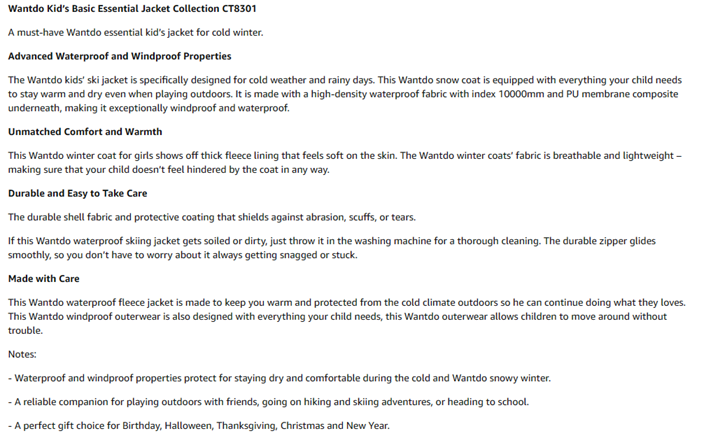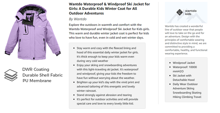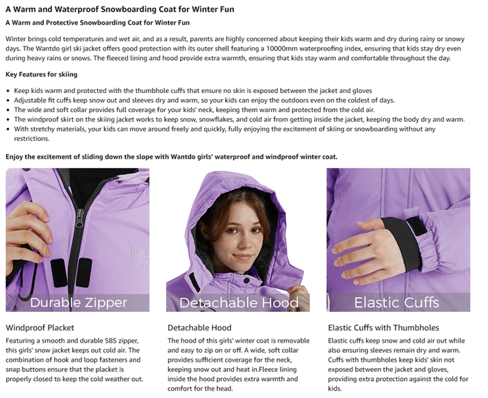 Keep Waterproof but Dry - With a 10000mm waterproof repellent coating, this kid girls' winter coats is great for keeping your child dry during skiing or snowboarding. Plus, the windproof skirt on the girls' skiing jacket works to keep snow, snowflakes, and cold air from getting inside the jacket.