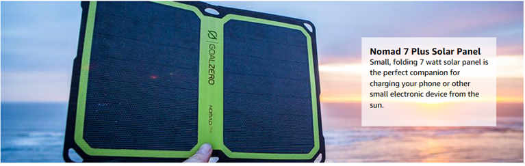 Ultra lightweight & portable, weather-resistant solar panel enables you to charge handheld USB/12V gear directly from the sun. Use a Goal Zero portable power Pack & store power for your gear day or night.