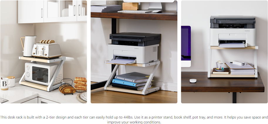 - MULTIFUNCTIONAL STAND - Our desktop stand is built with a double tier design and ambient color and can be used as a printer stand, book shelf, storage shelf, plant pot tray and so on. It is ideal for both home and office use with its neat and modern appearance