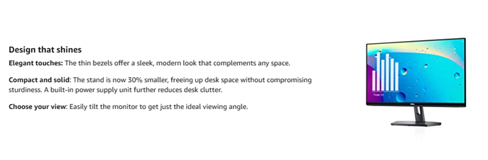• Compact base to maximize desk space. Display Position Adjustments: Not Available