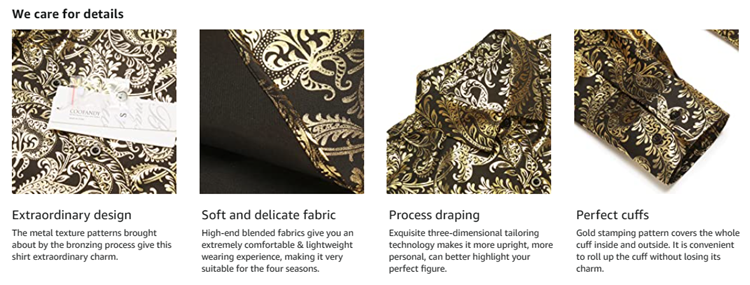 - Elegant Gold Floral Printed Dress Shirts: Crafted from hand selected material, this long sleeve shirt has been elaborately tailored for a comfortable regular fit. Clean and understated designs give an instant touch of effortless cool.
