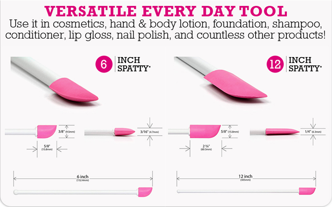 • MONEY SAVING MAKEUP SPATULA – The Spatty and Spatty Daddy Pink 6 and 12 Inch Set are mini cosmetic beauty spatulas that scrape up to 25% more personal care product out of your jar or bottle