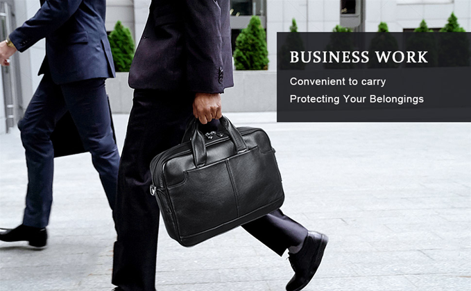This beautiful briefcases is with enough large space, which can carry what you want, all accessories are arranged in order. Whatever it's for your daily use or business travel, you always feel convenient. Important is the classic black leather fit for everybody, any occasion, whoever you're young man or taste old man, it's worth for you to own.