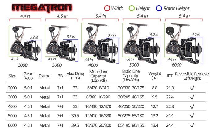 MegaTron spinning reels have a total of seven, double shielded stainless-steel ball bearings plus an instant anti-reverse for a total of eight bearings. The precise placement of these premium quality saltwater-ready ball bearings results in an exceptionally smooth reel that performs equally well as freshwater or saltwater fishing reel saltwater. MegaTron spinning reels are available in five-reel sizes from 2000 to 6000.