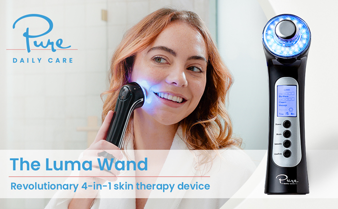 Pure Daily Care Luma - 4 in 1 Skin Therapy Wand - Ion Therapy LED Light Machine - Wave Stimulation- Massage - Anti Aging - Lift & Firm Tighten Skin Wrinkles