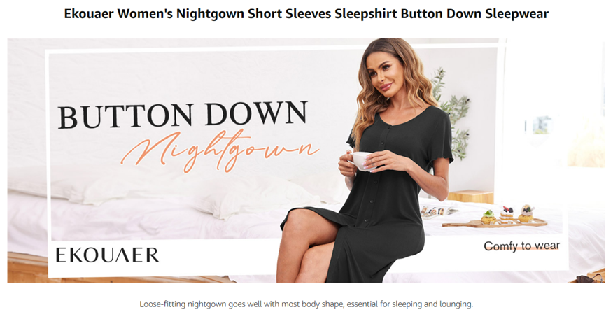• Ekouaer sleepwear dress is made of stretchy and skin-friendly fabric, breathable and comfortable nightshirt, relaxed fit is never tight or constricting. This womens button nightgown will give you a comfortable night.