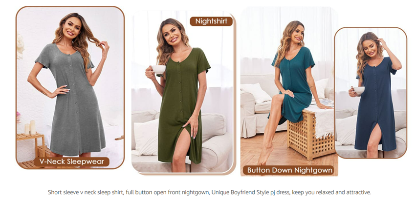 • Short sleeve & knee length pajama dress, feeling much freedom while you are walking.It is a great choice to wear this night shirt while watching TV with your family or your friend.