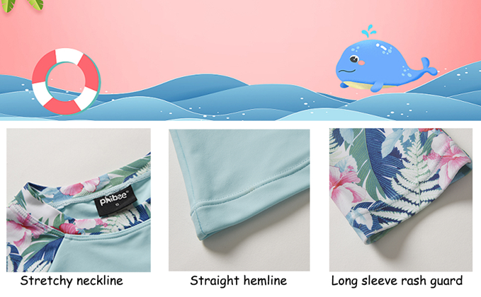 PHIBEE Girls' Rash Guard Set Long Sleeve UPF 50+ Sun Protection Two-Piece Swimwear