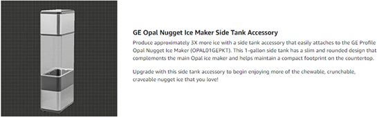 Included Components | Opal side tank base, Use and care instructions, Cap for side tank, Opal Side Tank |