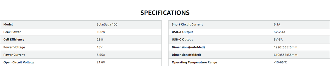 Included Components | 1*Jackery SolarSaga 100 Solar Panel. |