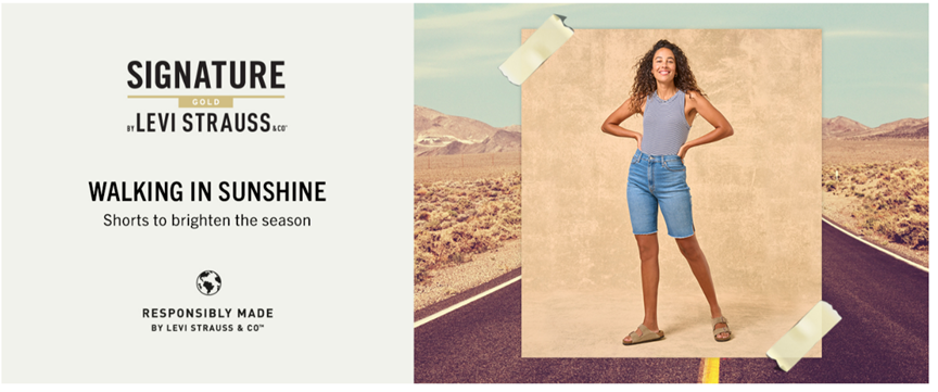 Signature by Levi Strauss & Co.™ Women's Mid-Rise Skinny Shorts plays counterpart to the Mid-Rise Skinny Jeans. Just as comfy, fashionable, and amazing to wear — only shorter with a cute, trendy cuff. Crafted from ultra-comfortable Simply Stretch denim and a lightweight fabric, these have an added length for those who prefer a little coverage with their shorts. Signature by Levi Strauss & Co. Women's Mid-Rise Skinny Shorts are the perfect warm-months denim option you’ll want to wear. Every. Single. Day.