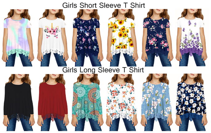 • Feature: Short Sleeve, O-Neck, lace hem, casual style, loose tunic tops