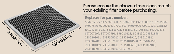 • Material and Size: made of durable aluminum and high quality carbon; Measures about 8-3/4" x 10-1/2" x 3/8", please ensure your existing size can match this filter before purchasing