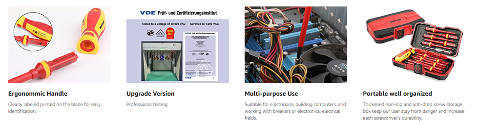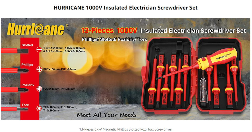 CR-V Insulated Electrician Screwdriver Set with Magnetic, Phillips Slotted Pozidriv Torx tips.