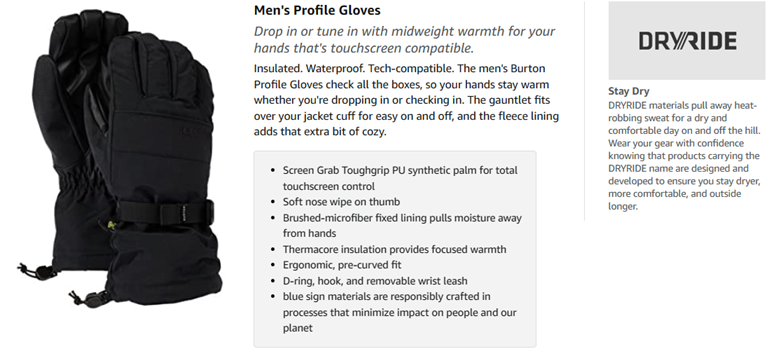Burton Men’s Insulated, Warm and Waterproof Winter Profile Glove with Touchscreen