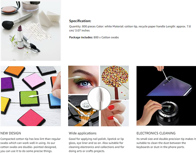 • ✅【PACKAGE INCLUDES】: 4 packs of cotton swabs, 800 pieces in total. this swabs handle are made with recycle paper with moderate hardness and strong toughness.