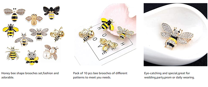 The package includes 10 pcs bee brooches of different patterns,you can choose your own needs according to different clothes.
